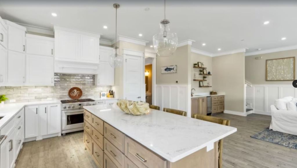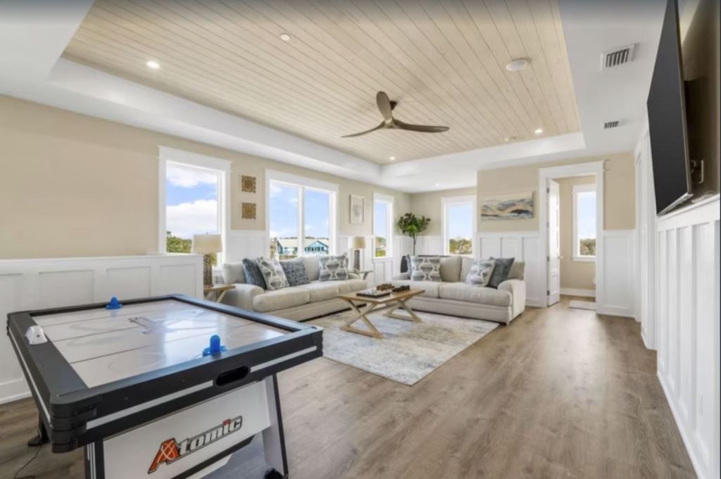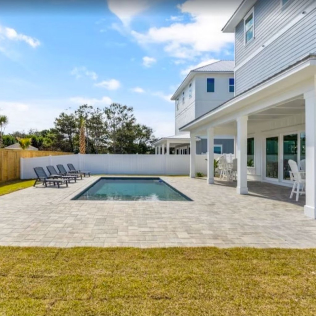 Check out this Brand New 8BR-7 1/2 Bath Home with Large Pool with paver patio only steps to the Beach in the private community of Bid-A-Wee Beach! This home boasts a massive floor plan with room for everyone, expansive decks with Stunning Sunset and Ocean Views. Perfect for a large family to beach it or relax by the pool. Sleeps 22 comfortably. GE Cafe appliances, Gas Stove and Gas Grill. 3rd floor has rec area with sectional couch with air hockey and foosball table for the kids. Large Smart TVs throughout the house. Parking for 5 cars. The Beach is walking distance. The Beach access is shown in pictures and is accessed by code for owners and renters only. You will receive gate code upon check in. Look no further for your Beach Getaway with the whole family.