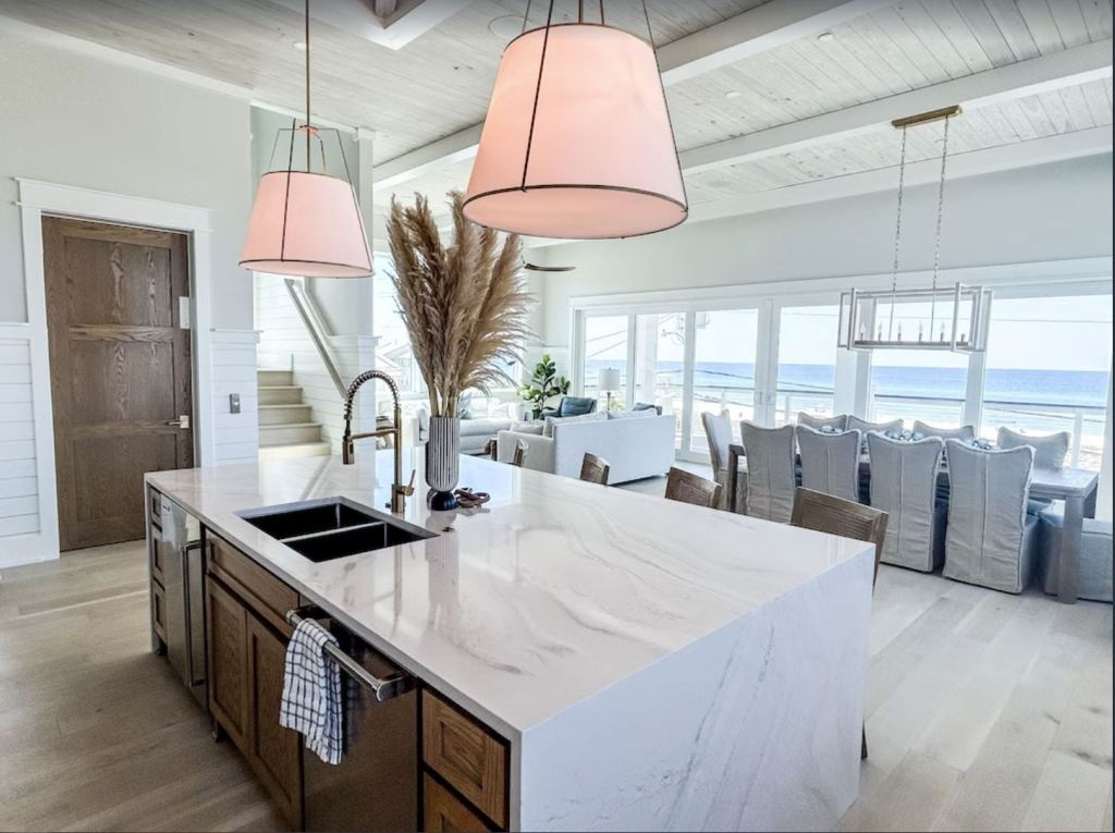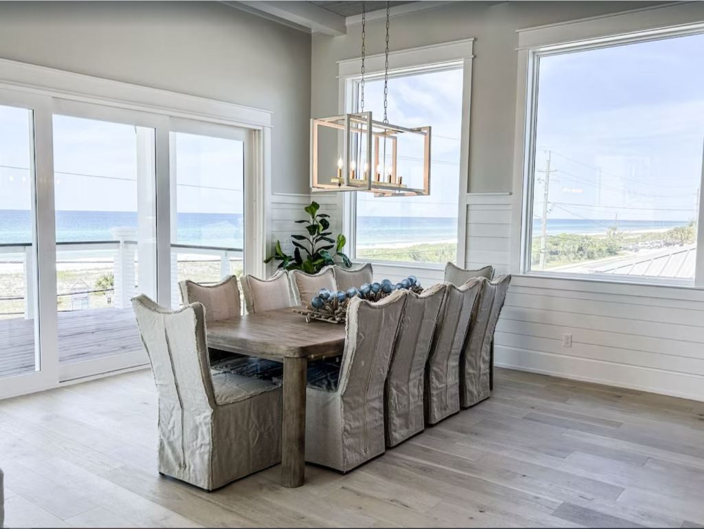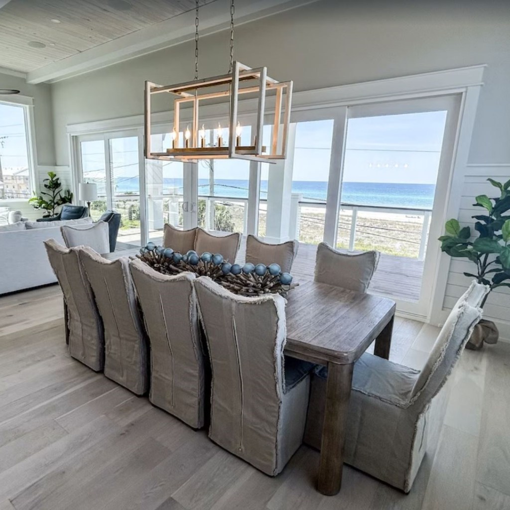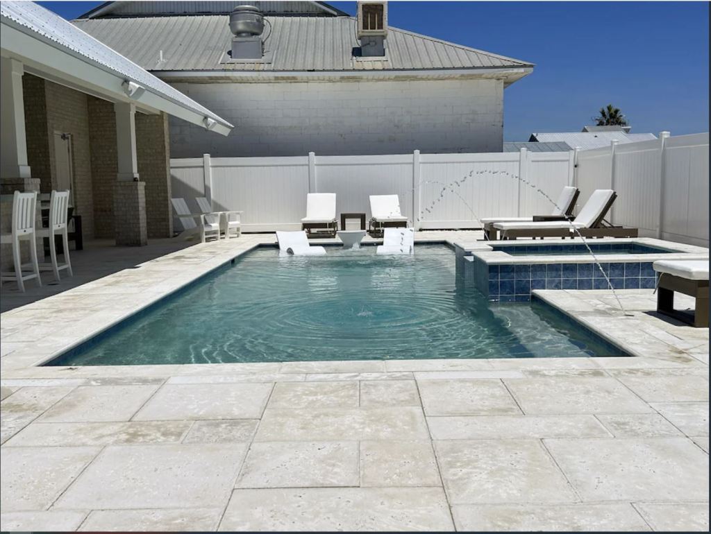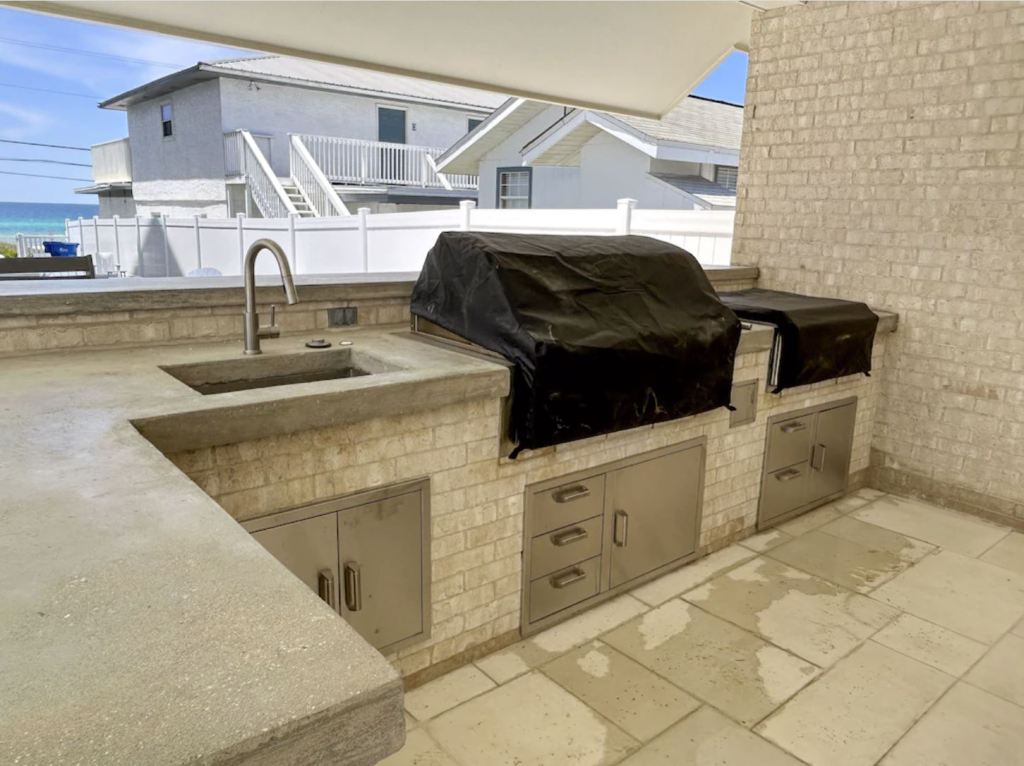 Enjoy endless views of the Gulf of Mexico in this brand new, luxurious custom 3 story home in the Laguna Beach area of Panama City Beach. 6167 sq ft. – 8 bedrooms, 8 1/2 bathrooms, sleeping 26 with Pool, Hot Tub, Covered Outdoor Entertainment Area featuring an Outdoor Kitchen, with a Built-in Lynx Grill and Built-in Lynx Griddle, under counter fridge and Green Egg. Subzero and Wolf Appliances throughout the home and in the main kitchen, Full-size ice maker in garage, custom bar entertainment area, drink refrigerators and Elevator. Bunk beds for the kids and King Size beds for the adults will have you wishing you could stay longer. Enjoy direct access to the beach immediately across the street from the home.